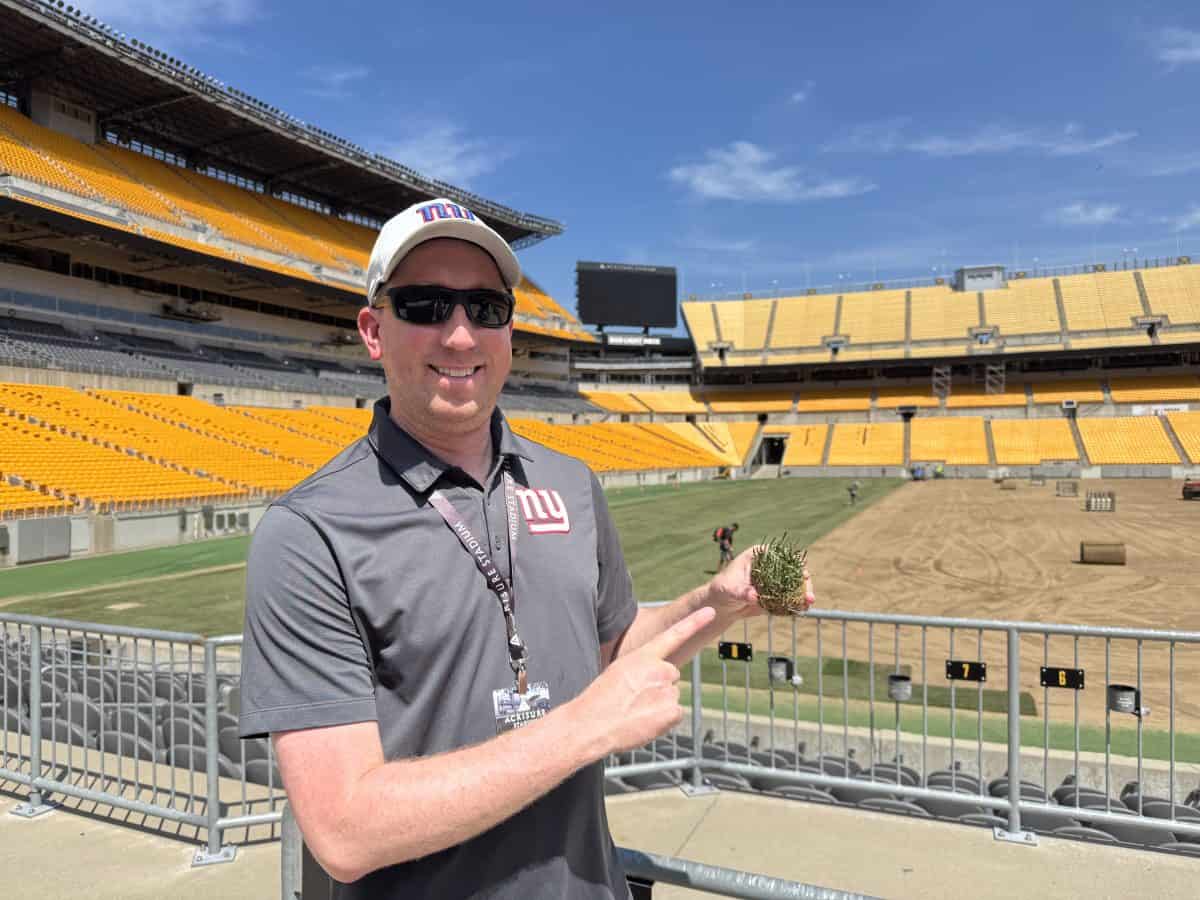 Note: When we visited in June 2025, the grounds crew was regrassing the field, which they do a few times a year with Kentucky Blue Grass. You’ll see the field in a transitional phase in our photos.