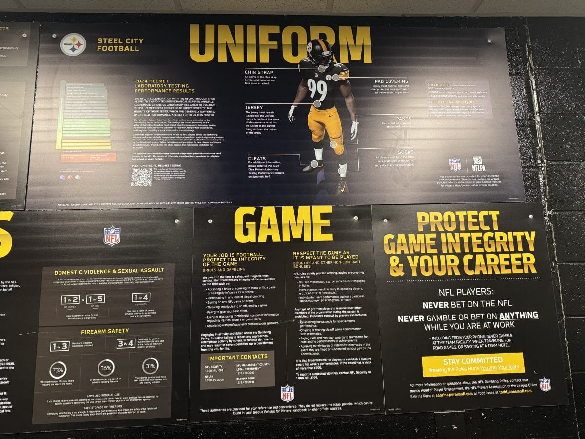 - The hallways leading to the locker rooms: Read the uniform compliance rules and hit the “Men of Steel” sign (dedicated to the steel workers who built the stadium) for good luck.