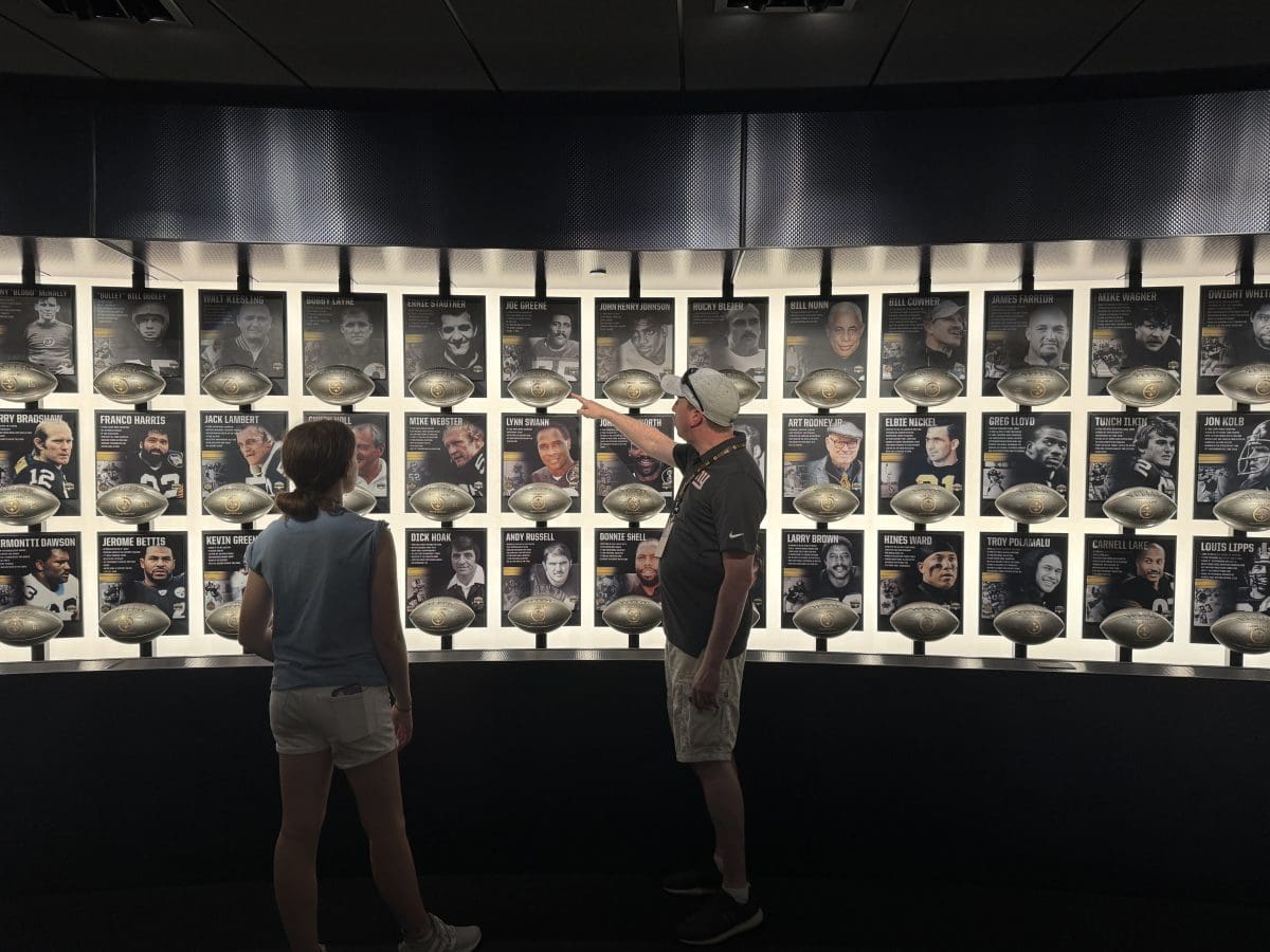 This week we’re celebrating the start of football season by sharing our tour of Acrisure Stadium, home of the Pittsburgh Steelers and UPitt Panthers. On a recent trip to Pittsburgh, Pennsylvania, we had the opportunity to tour the 68,000 seat stadium and many popular areas of the stadium, as well as a few spots the typical ticket holder doesn’t get to see. The tour is fun and engaging and everyone (even us Giants fans!) will have a good time.