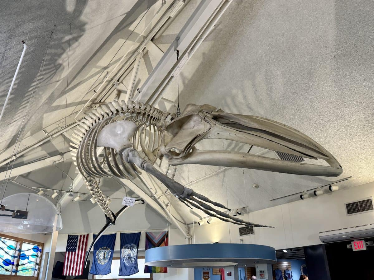 - Look up at the 32 foot long skeleton of “Tofu”, a two and a half year old juvenile humpback whale who weighed over 20,000 pounds and had 148 bones, hanging over the Main Lobby.