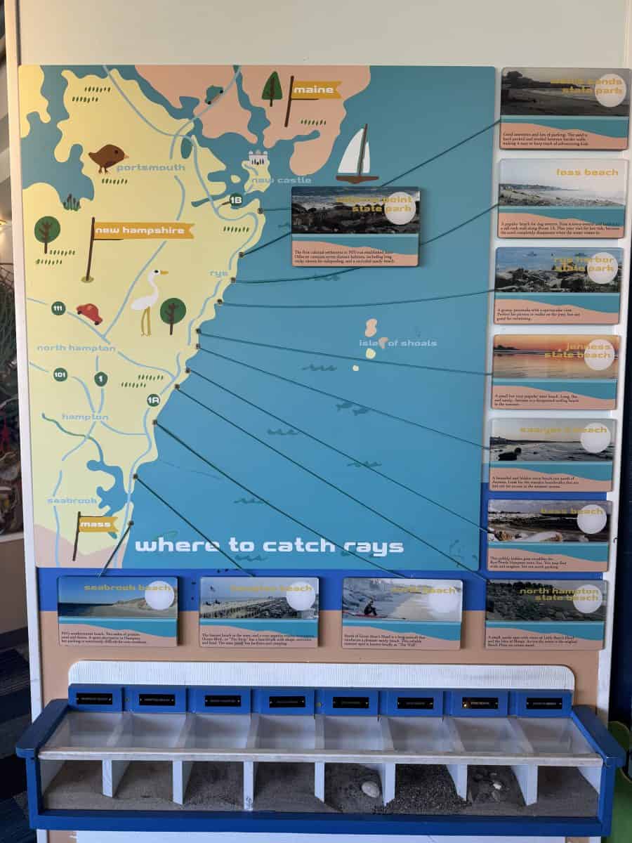 - Play in a sand pit and compare the sand composition of various local beaches in the New Hampshire Beach exhibit.