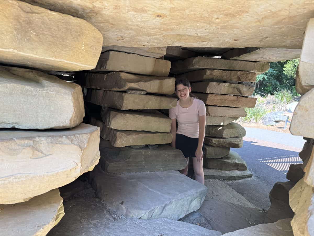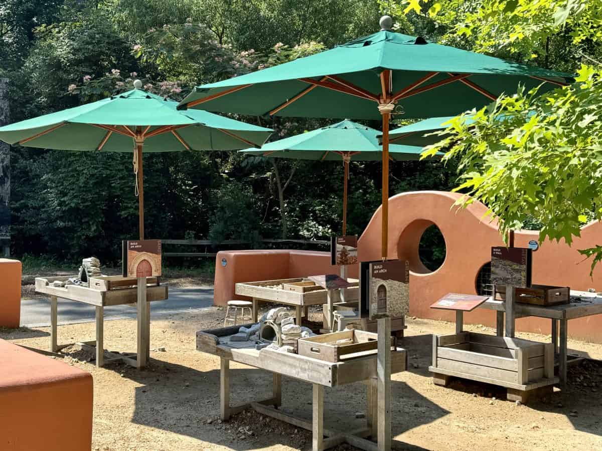 - Get wet in the Earth Moves: Rocks Move aqua exhibits. There are misting stations; a splash pad with a 20 foot waterfall; stone yard with building stations for arches, stone stacking, and wall building; and a sandstone cave.