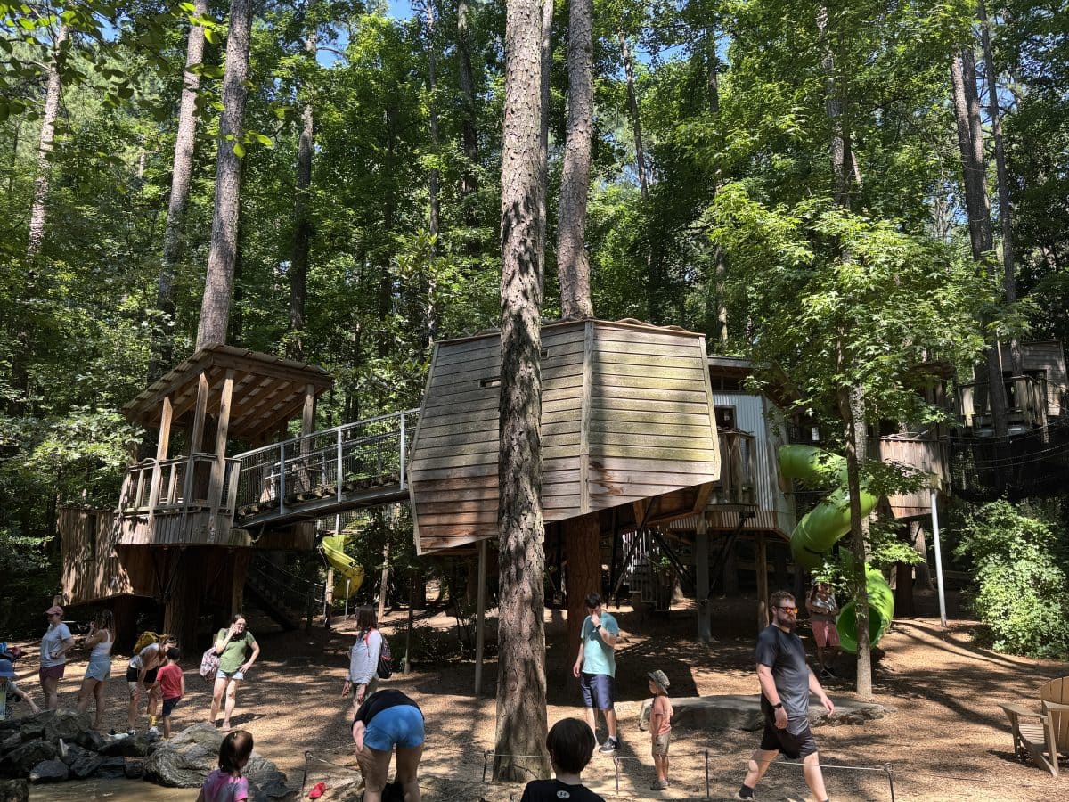 - Climb between tree houses in the Hideaway Woods exhibit.The two acre space has a massive treehouse village (with bridges, a ropes course, and slides!), a separate miniature treehouse and play space for the under seven crowd (with special programs each week and StoryTime every Wednesday) and a Woodland Stream where everyone can cool off and get a little wet.