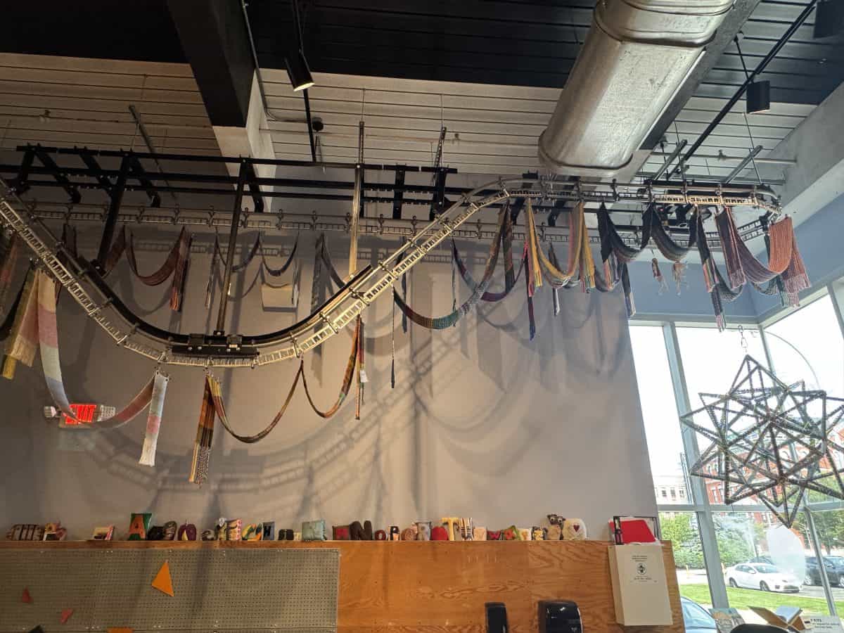 - Contribute to the latest textile scarf project in the Makeshop. A typical scarf can take a collaborative group up to three weeks to complete (with help from the staff) and are either displayed in the lab (look up at the “drying rack”) or donated to local organizations.