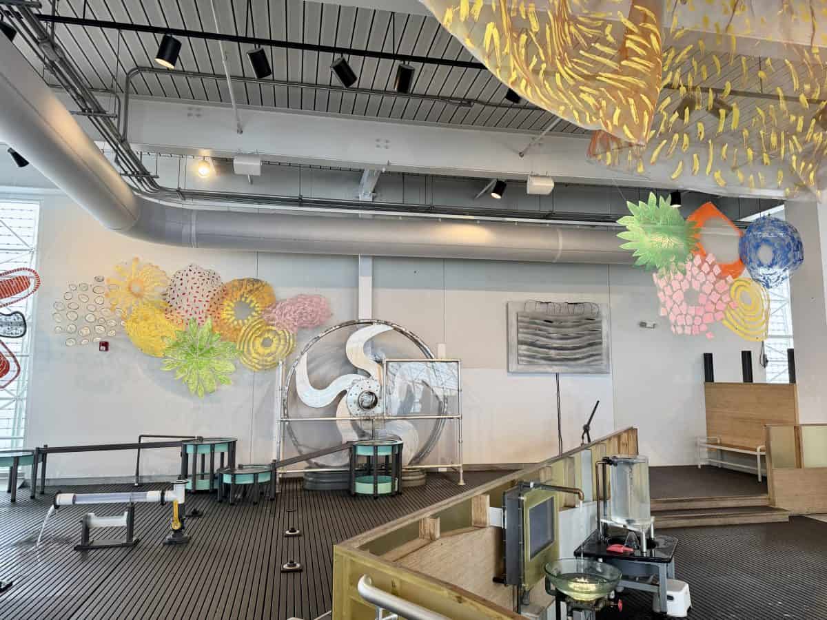- Bring a swimsuit and get wet in Water Play on the third floor- there’s everything from water tables to ice tables (yes, make your own ice sculpture!) to painting with water to a water vortex and more! The floor captures and recycles the water (which is treated with bromine so it’s safe for everyone). There’s also changing and drying areas.