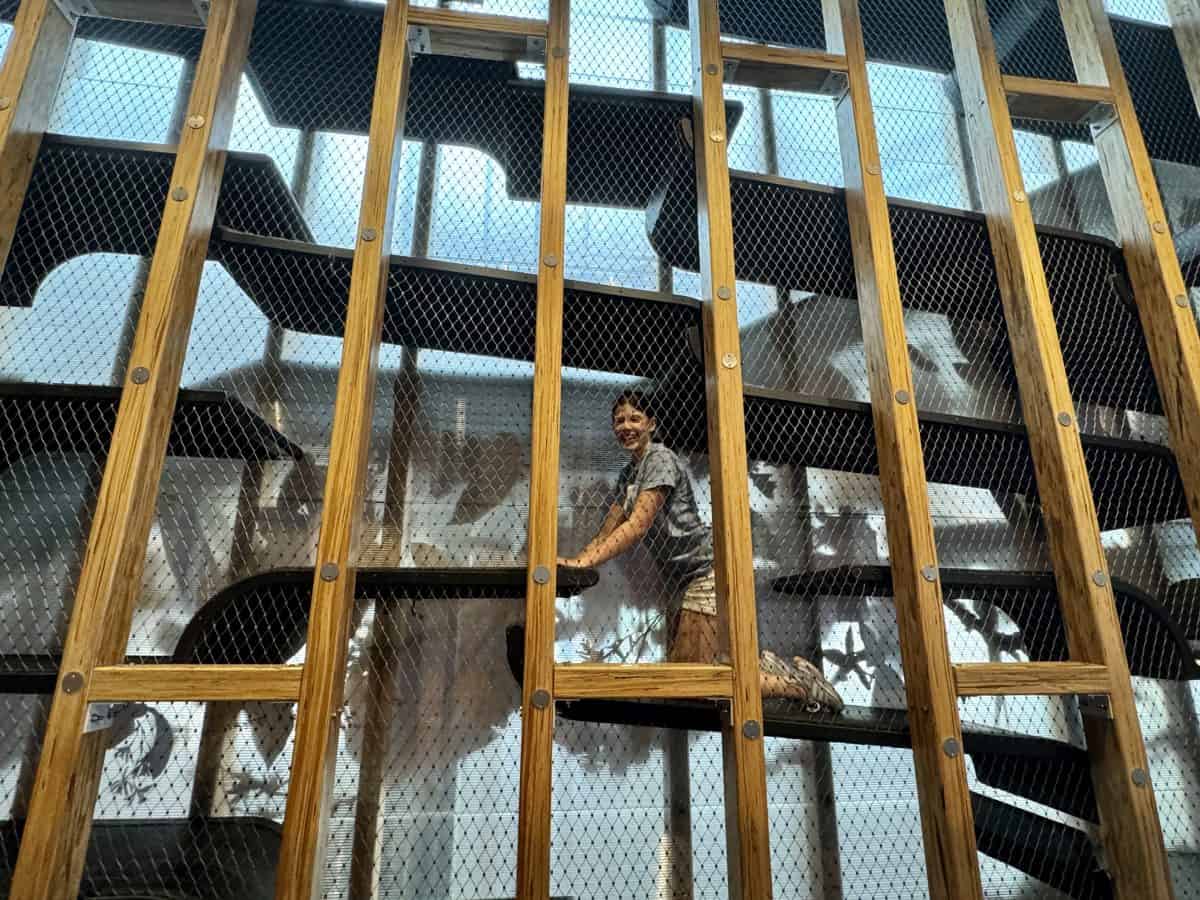 - the Gymlacium: A three story jungle gym made out of hemp rope by Slovenian artist Manca Ahlin, who spent two years creating the installation. There is a 48” height requirement.