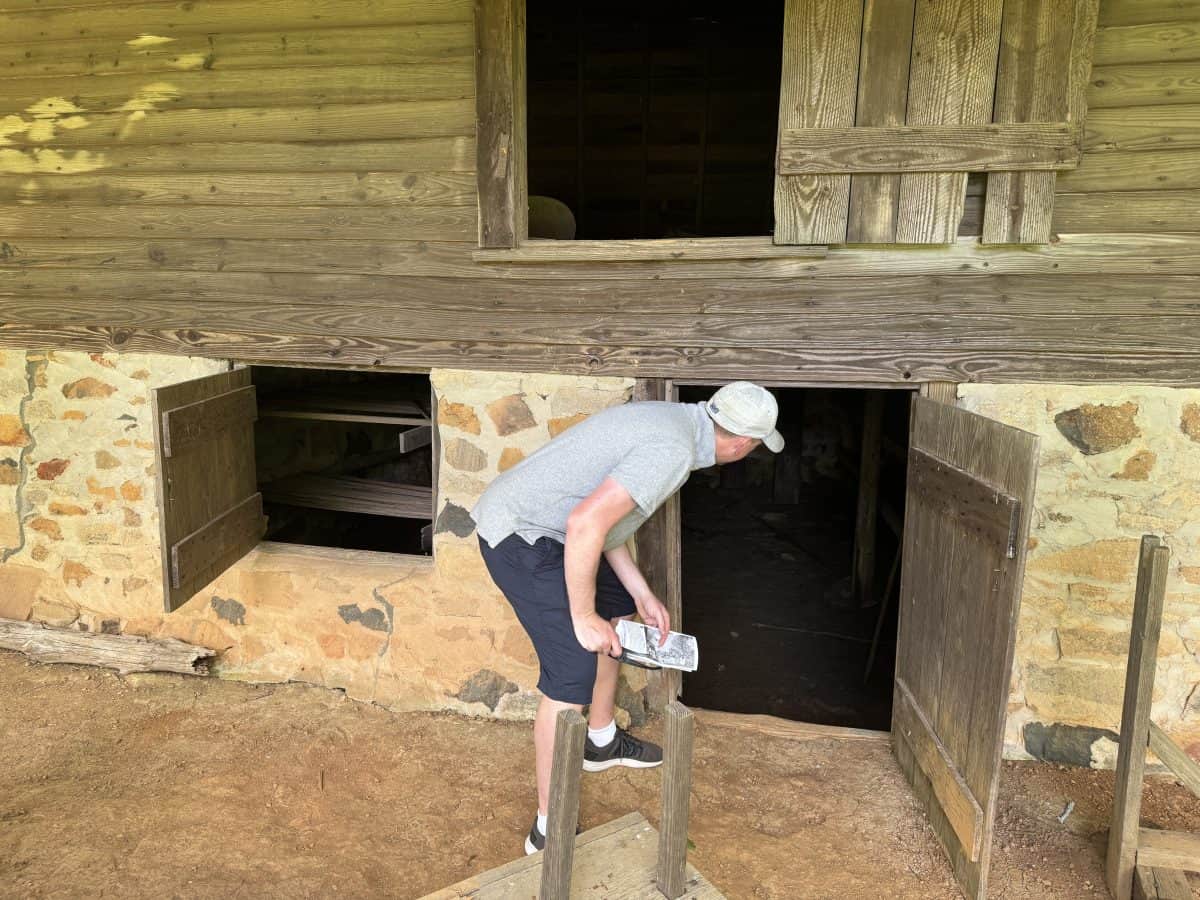 - Take a guided tour or walk the quarter mile site trail (it’s packed down gravel and fine for stroller but not even pavement) to see the factories, smokehouse, wellhouse, grape arbor, and springhouse. Some buildings are open to the public without guided tours on select days- check with the Visitor Center staff for updated information.