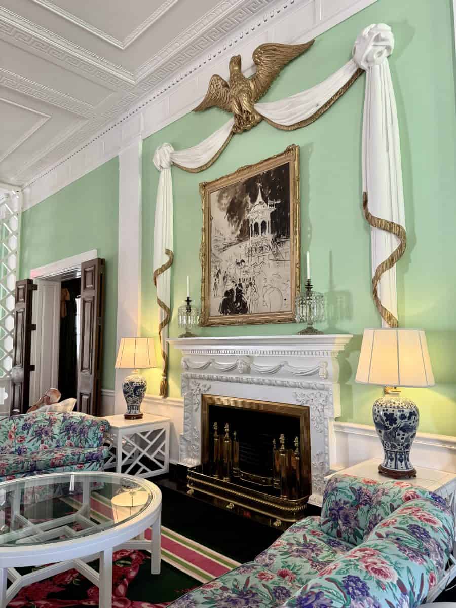 - The copy of a portrait of Princess Grace of Monaco (the original hangs in a museum in Monaco), who vacationed three times at the Greenbrier in the North Parlor (also known as the “Princess Grace Parlor.” The flooring is wood from an older structure on the property dating back to 1922.