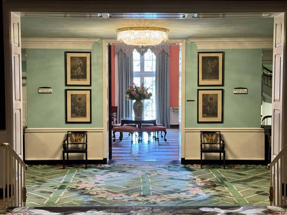 - The clock that never changes time (Dorothy Draper believed that “time stands still at the Greebrier”) in the Clock Lobby.