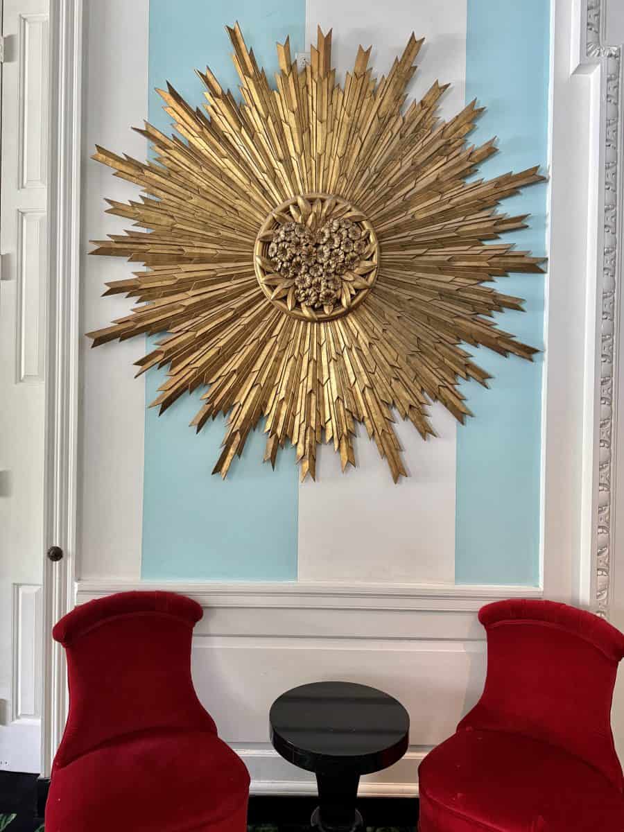 - The massive sundial in the Clock Lobby, a personal gift to the resort from Carlton Varney, Dorothy Draper’s apprentice.