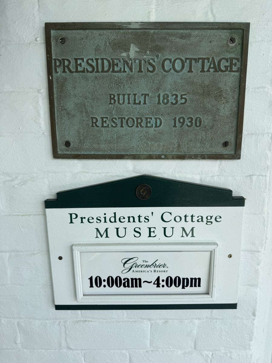 - Tour the Presidents’ Cottage Museum: Built in 1835 as a summer cottage for a wealthy sugar plantation owner who summered at the resort, it was later used as a summer retreat for eight five presidents: Martin Van Buren, Millard Fillmore, Franklin Pierce, James Buchanan, and John Tyler. The cottage opened as a museum in 1932 and today, guests are welcome to take self gilded tours of both floors of the museum, which include original furnishings, a collection of photographs and notes of distinguished guests over the decades, a diorama of the White Sulphur Hot Springs in 1859, an old stage coach, and hand painted murals on the walls. Read more about the museum here and here. Next to the Arts Colony Shops