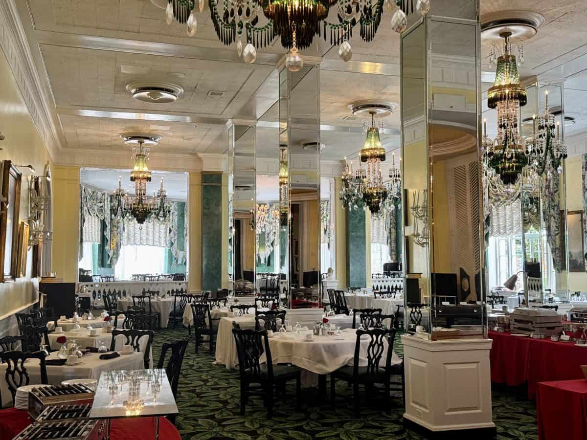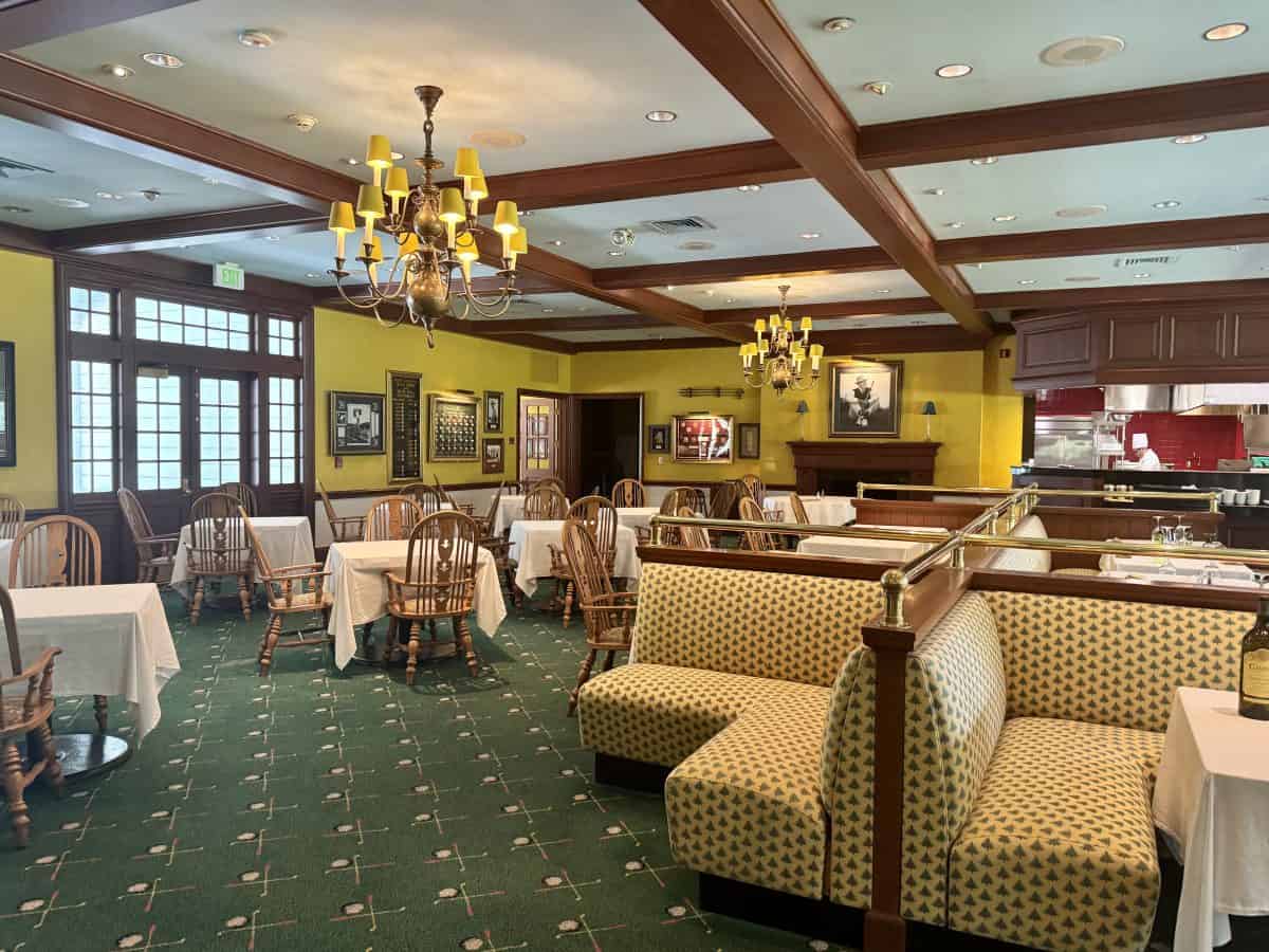 - The Main Dining Room: Formal dining for breakfast (buffet and a la carte options) and dinner with a children’s menu; located on First Level; reservations required for dinner; menu here.
