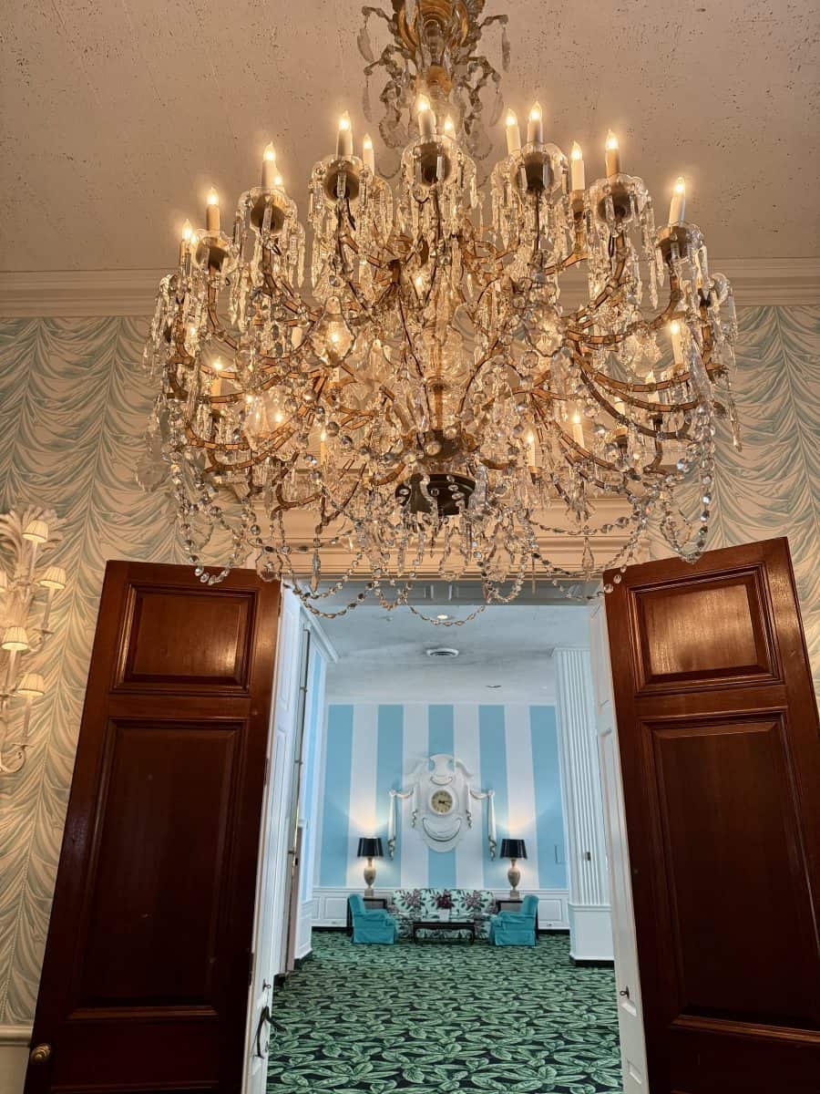 In 1869 the Chesapeake and Ohio Railroad Company brought midwesterners to the resort area and several people and businesses owned the resort property until 1910 when the C&O Railway Company bought the resort property and the seven thousand acres surrounding it, expanding it to a year round resort with amenities such as the indoor pool in 1912 and first golf course in 1914. The C&O Railway owned the property until 1942 when the US government purchased it, closed the resort to the public, and created the Ashford Military Hospital, caring for over 24,000 wounded soldiers. The C&O Railway bought the property back in 1946 and hired famed designer Dorothy Draper, known for her bold prints and stripes, use of big flowers in decor, and black and white checkered floors, to completely redesign the resort. Eighteen months and 12 million dollars later, the resort reopened in 1948. Draper’s apprentice, Carlton Varney, helped with the design and took over Draper’s design company when she died in 1969.