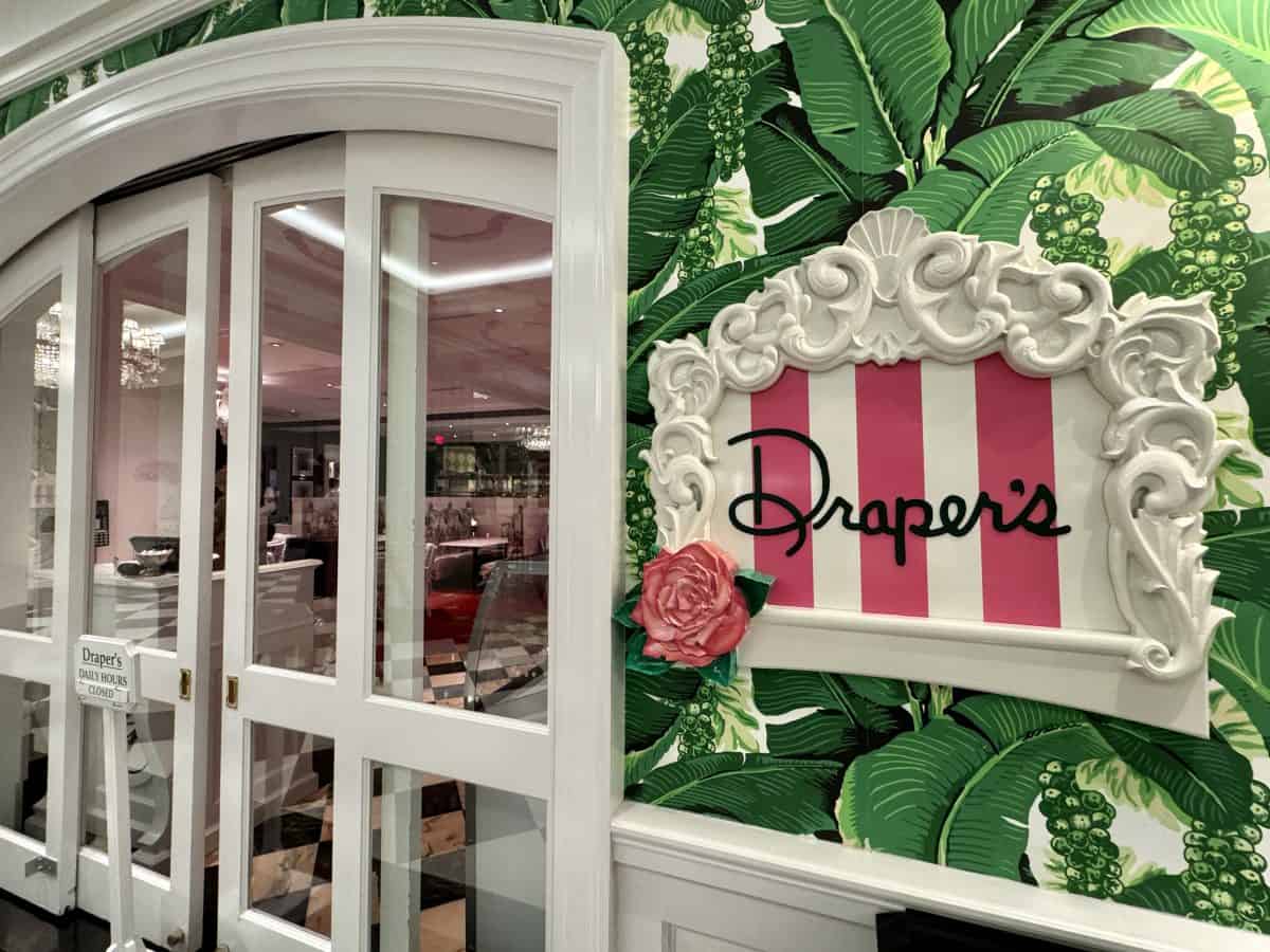 - Draper’s Cafe and Ice Cream Bar: Informal spot for lunch featuring favorite recipes of Dorothy Draper and a children’s menu; located on Casino Mezzanine Level; walk in only; Ice Cream Bar open until 8pm; menu here.